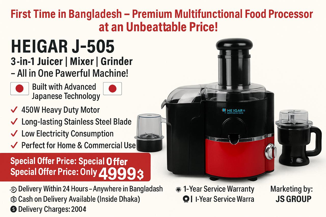 Introducing the HEIGAR J-505 – 3-in-1 Juicer | Mixer | Grinder – All in One Powerful Machine!